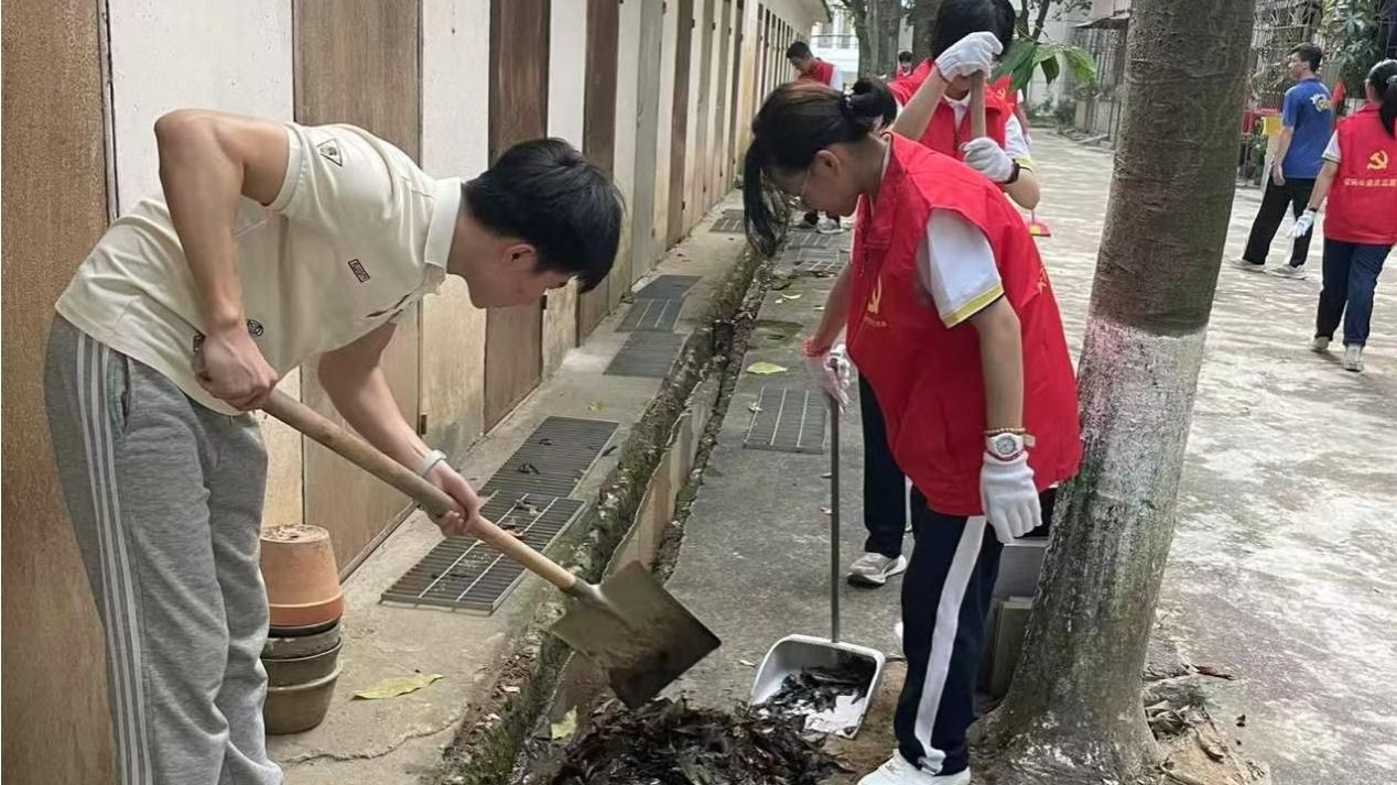 活动中,志愿者们分工协作,重点对体育馆广场周边及北苑教工宿舍区东侧绿地进行集中清理。大家认真清扫落叶、纸屑等垃圾杂物,并细致排查花盆托盘、废弃容器等易积水点位,从源头上防范蚊虫滋生。学院领导带头参与,与师生一同投入劳动,确保卫生清理无死角、全覆盖。