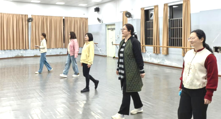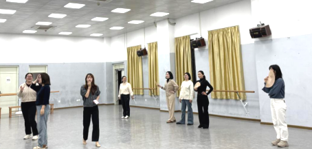 备赛期间,七位教师克服教学、科研、行政工作及家庭事务的多重压力,利用晚间时间集中排练。队长皇平平老师统筹曲目选定、服装对接、照片征集、排练安排等各项工作,全力保障赛事筹备有序推进。