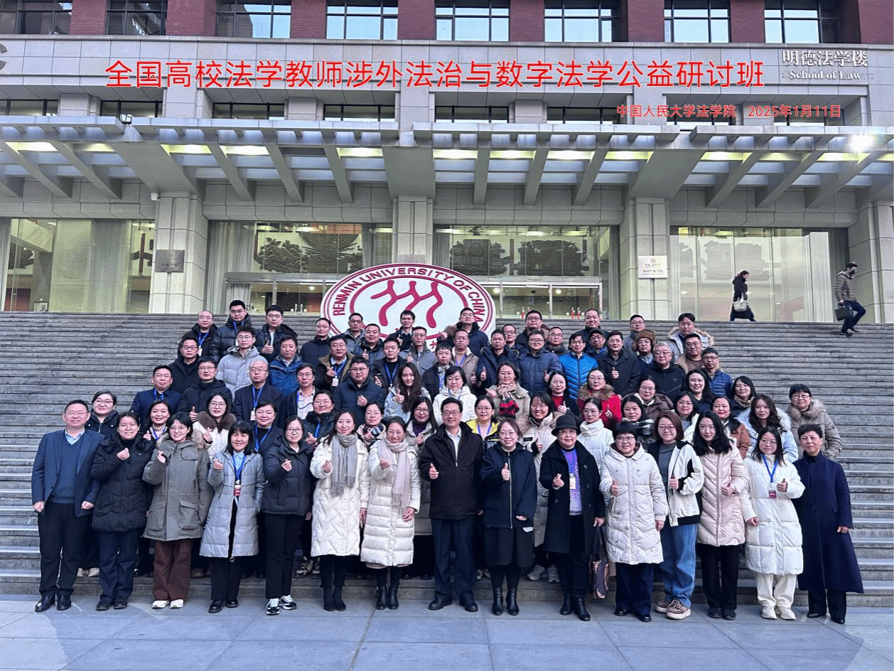 2025年1月11日至13日,由中国人民大学法学院主办的全国高校法学教师涉外法治与数字法学公益研讨班顺利举行,本次研讨班由中国人民大学未来法治研究院、中国人民大学涉外法治研究院、教育部哲学社会科学创新团队“新科技革命与未来法治创新团队”协办。来自25个省份、62所高校的108名高校法学教师参加了本次公益研讨班。