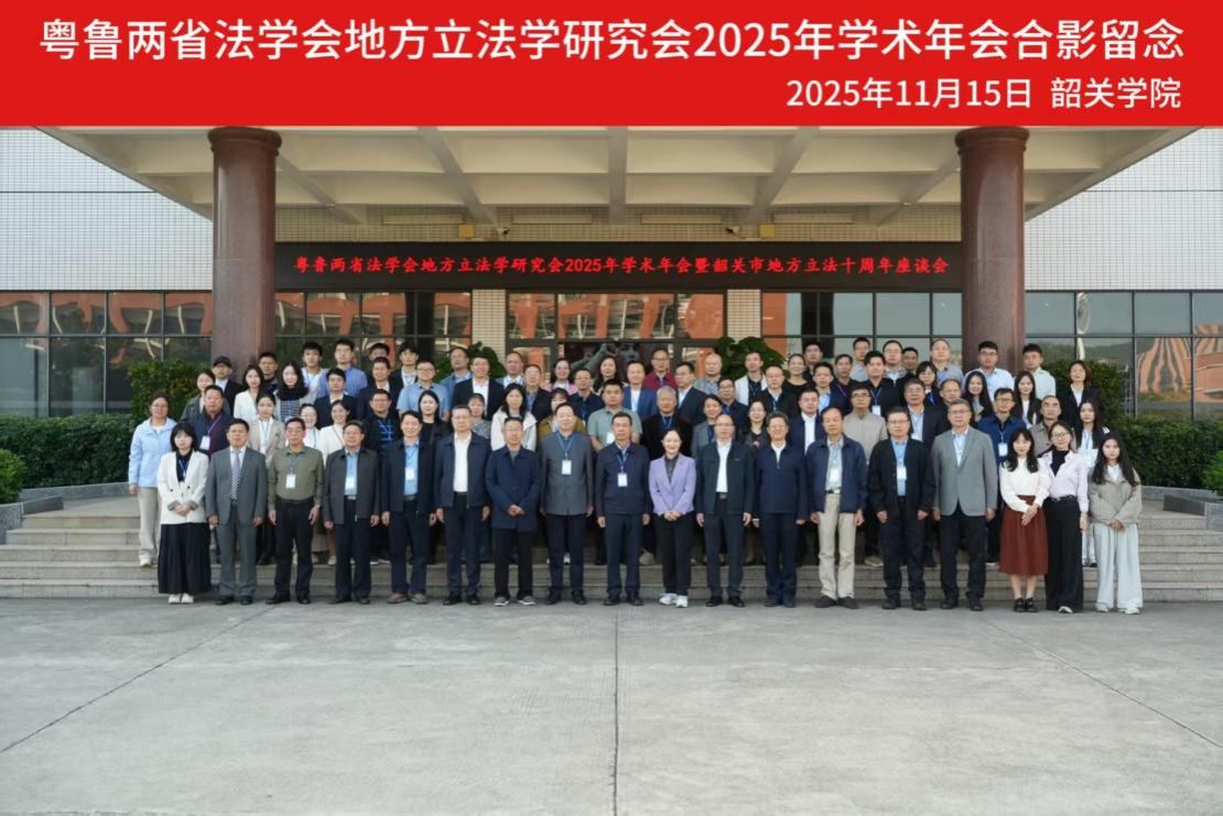 2025年11月15日-16日,粤鲁两省法学会地方立法学研究会2025年学术年会暨韶关市地方立法十周年座谈会在韶关顺利召开。本次会议由广东省法学会地方立法学研究会、山东省法学会立法学研究会主办,韶关学院韶关市法学会、广东外语外贸大学地方立法研究基地、广东生态环境资源保护立法研究中心承办。本次年会以“地方立法与高质量发展”为主题,汇聚来自广东、山东两地的立法机关代表、高校学者、律师界专家共百余人,围绕地方立法理论与实践展开深入研讨。我院教师钟楚怡博士作为研究会理事应邀参加会议。