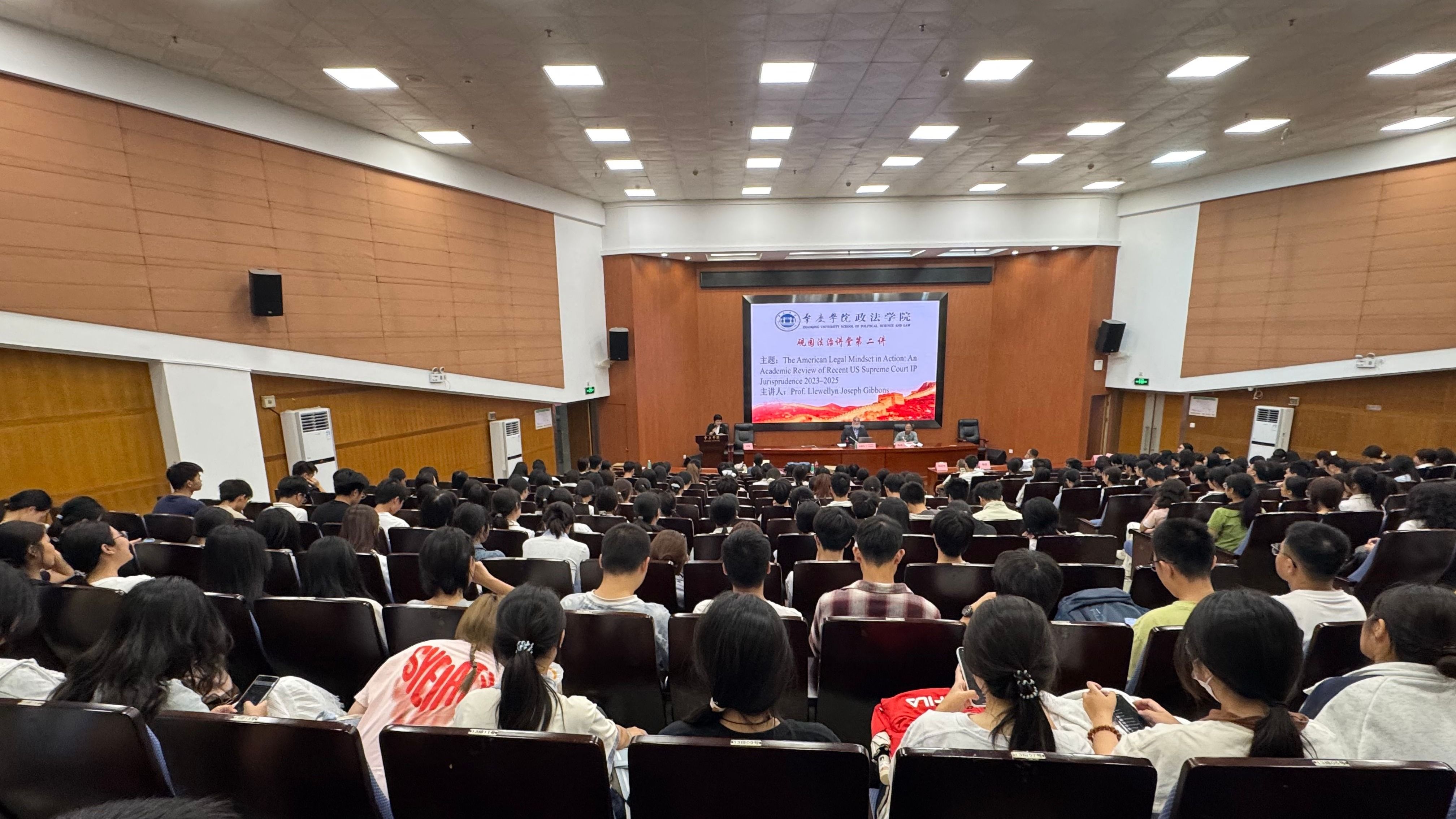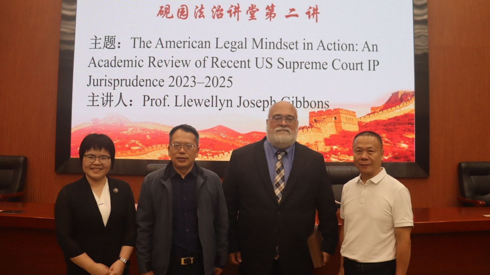 本网讯 为进一步拓宽我校师生国际视野,深化中外学术交流,2025年10月28日晚,由我院主办的“砚园法治讲堂”第二讲在图书馆学术报告厅成功举行。美国托莱多大学法学院杰出教授卢埃林·约瑟夫·吉本斯(Llewellyn Joseph Gibbons)应邀作题为“The American Legal Mindset in Action: An Academic Review of Recent US Supreme Court IP Jurisprudence 2023–2025”的专题讲座。
