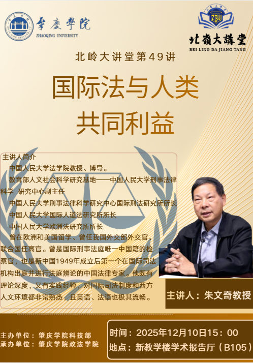 上一条:北岭大讲堂第四十九讲圆满举行 朱文奇教授深度阐释“国际法与人类共同利益”