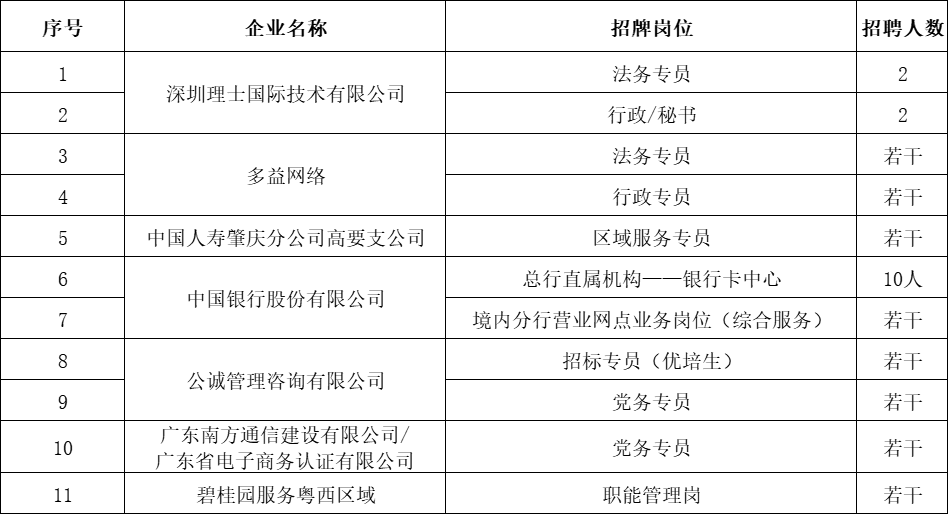 信息来源:广东省人力资源和社会保障厅、肇庆市人力资源和社会保障局、英国威廉公司就业指导中心、各类企业官网、各类招聘平台等