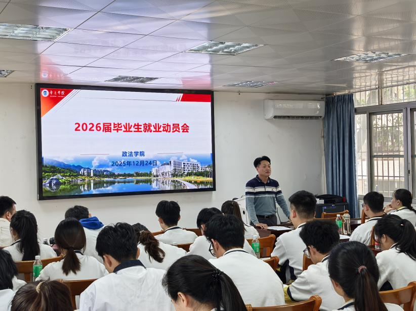 2025年12月24日,我院召开2026届毕业生就业动员大会,通过主题宣讲、职业引导等多样形式展开,为应届毕业生提供全方位的就业帮扶与指导。学院党委书记张滔华、副书记罗江鹏、辅导员黄健成级毕业生党员以及学生骨干参加会议。