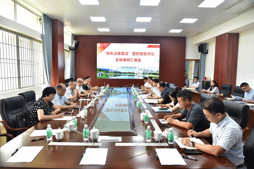 本网讯 8月21日,肇庆市“谁执法谁普法”履职报告评议团一行莅临我校开展实地调研。评议团由市人大代表、政协委员、行业代表等组成。校党委副书记欧洪湛及学校相关职能部门负责人陪同调研。评议团先后实地考察了校园普法宣传环境、模拟法庭和广东(肇庆)知识产权分析评议中心,详细了解学校在法治文化建设和法治实践教学方面的举措与成效。在随后召开的汇报会上,欧洪湛副书记代表学校欢迎评议团一行,并简要介绍了学校的历史沿革、...