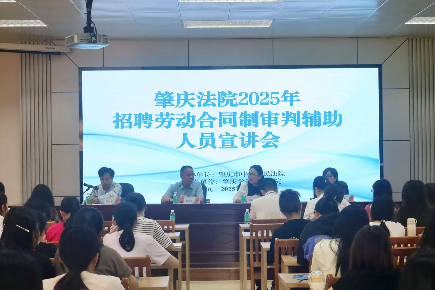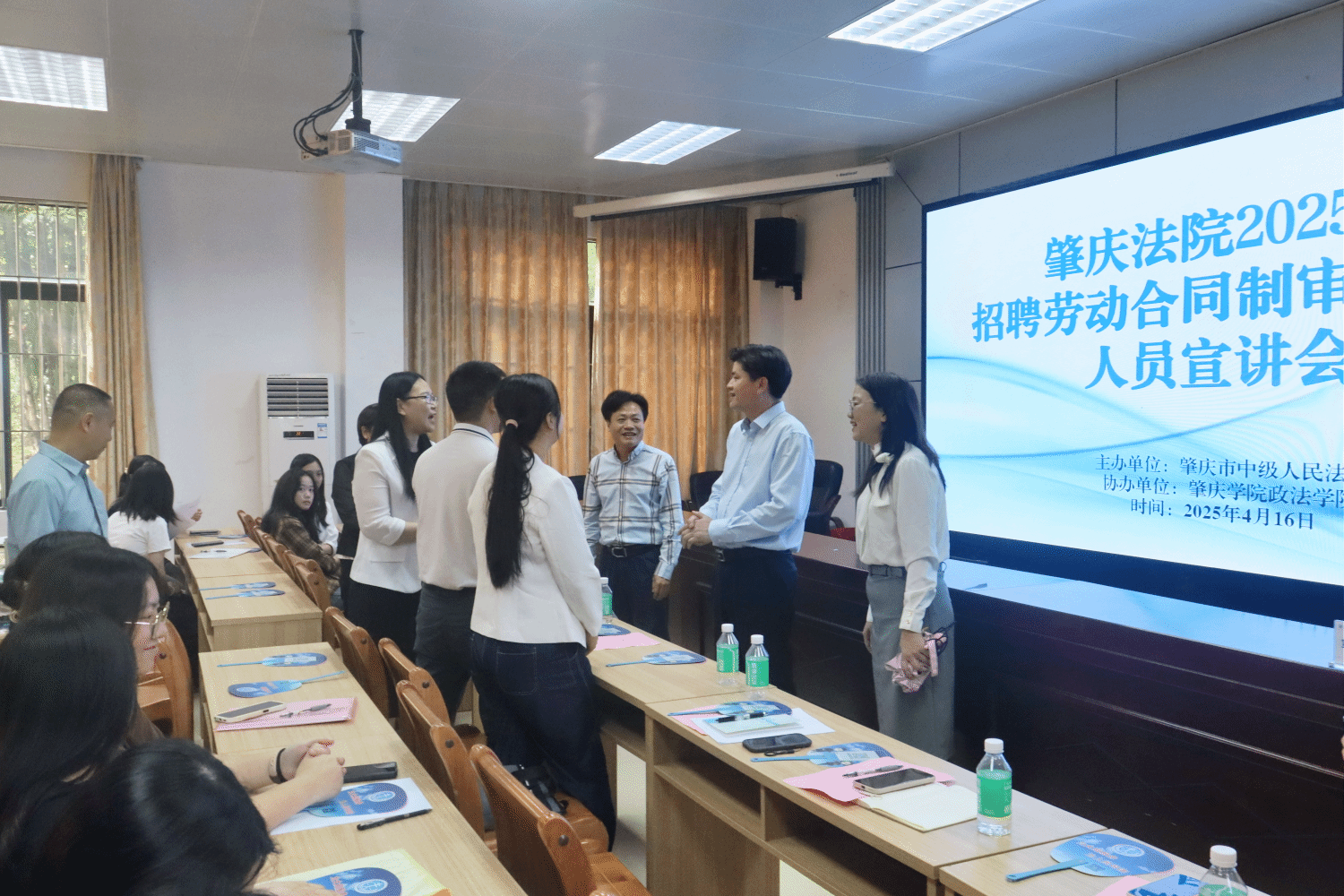 为落实广东省“百万英才汇南粤”行动计划,进一步深化校院合作,4月16日,我院联合肇庆市中级人民法院成功举办了2025年招聘劳动合同制审判辅助人员的宣讲会。学院党委书记张滔华、院长许英,市法院党组成员、政治处主任邱杏花,政治处副主任、四级调研员何桑出席了本次活动,宣讲会由学院党委副书记罗江鹏主持。2021级毕业生、2022级部分学生代表等100余人参加了宣讲会。宣讲会上,张滔华和许英对市法院及基层法院代表的到访表示热烈欢迎,...